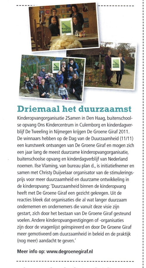 De Groene Giraf is een onderneming van Ilse Vlaming en Jan Meijering. Met ons bureau plan d.nu werken we sinds 2009 samen voor de Groene Giraf en andere opdrachtgevers.